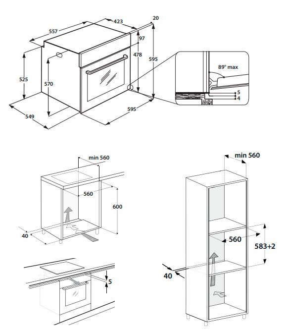 Daxili ölçülər (HxExD): 600 x 560 x 555 mm