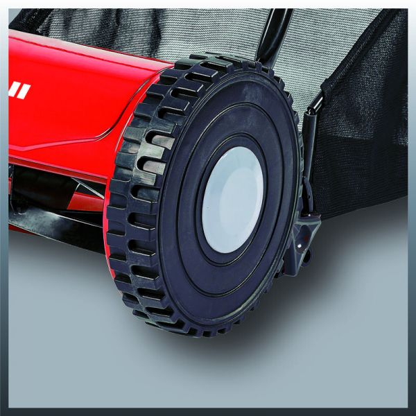 Mexanik qazonbiçən Einhell GC-HM 30 davamlı və effektiv köməkçidir ki, o, heç bir əlavə səy göstərmədən, həmçinin sakitcə və atmosferə zərərli tullantılar buraxmadan qazonunuzu səliqəyə salmağa imkan verir. Beş bıçaqlı mil yüksək keyfiyyətli ot kəsilməsini təmin edir. Kəsmə hündürlüyü 15 mm-dən 42 mm-ə qədər sonsuz tənzimlənir.