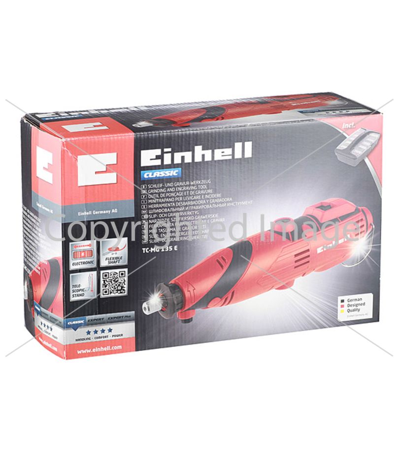 Einhell TH(TC)-MG 135 E 4419169 oyma maşını qazma, kəsmə, daşlama, təmizləmə və yazılar üçün istifadə olunur. Çatdırılma dəstinə ayrıca qutuda çevik şaft və böyük əlavələr dəsti daxildir ki, bu da vaxt və əlavə xərclər itirmədən işə başlamağa imkan verir. Bədənin arxa hissəsində modeli asılmış vəziyyətdə saxlamaq üçün mötərizə var (iş masasına bərkidilməsi üçün sıxaclı dayaq daxildir).