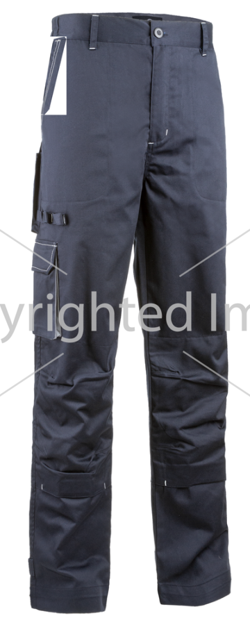 60% pambıq/40% polyester – 245 q/m2 tərəflərdəki elastik kəmər + 5 döngə, 1 D halqası, 2 italyan cibi, arxada Velcro ilə bərkidilmiş klapanlı 2 döş cibi, Velcro ilə bərkidilmiş 2 yük cibi, 1 alət döngəsi, Velcro ilə bərkidilmiş klapanlı telefon üçün 1 omba cibi, Velcro ilə bağlanan alt açılışı olan diz cibləri ayaqların dibi rəng kontrastlı Velcro ilə tənzimlənir: cibləri, üstü tikişi və rahat kəsimi olan çarxlar.