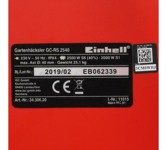 Elektrikli bağ parçalayıcı Einhell GC-RS 2540 3430620 elektriklə işləyir və buna görə də ətraf mühiti çirkləndirmir.
