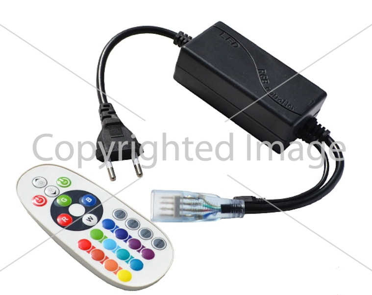 220V RGB idarəetmə blokun 16 statik və 4 dinamik idarəetmə rejimi var. Statik rejimlərdə parıltının parlaqlığını, dinamik rejimlərdə sürəti idarə etmək mümkündür. İdarəetmə bloku enerji söndürüldükdən sonra sonuncu proqramı saxlayır.