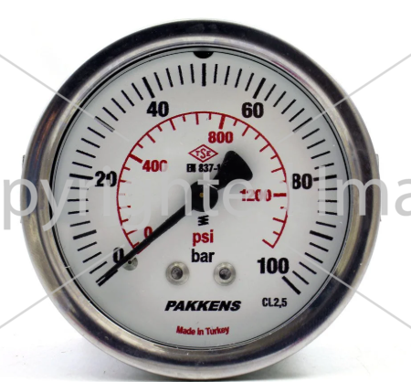 Manometr quru tipli (0-100 bar 63 mm 1/4" arxa bağlantı) Pakkens 0631000212
