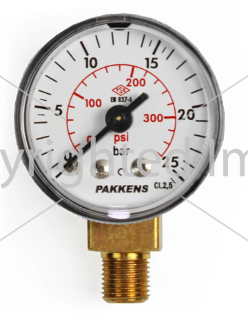 Manometr quru tipli (0-25 bar 50 mm, G1/4"B alt bağlantı metal gövdə) Pakkens 0501000109MG