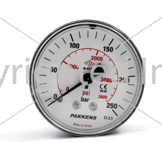 Manometr quru tipli (0-250 bar 63 mm 1/4" arxa bağlantı) Pakkens 0631000214