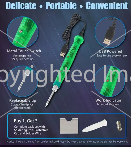 Pro'sKit SI-169U - Portativ USB lehimləmə dəmiri. Elektron komponentlərin tez quraşdırılması və sökülməsi, elektronikanın təmiri üçün nəzərdə tutulmuşdur.