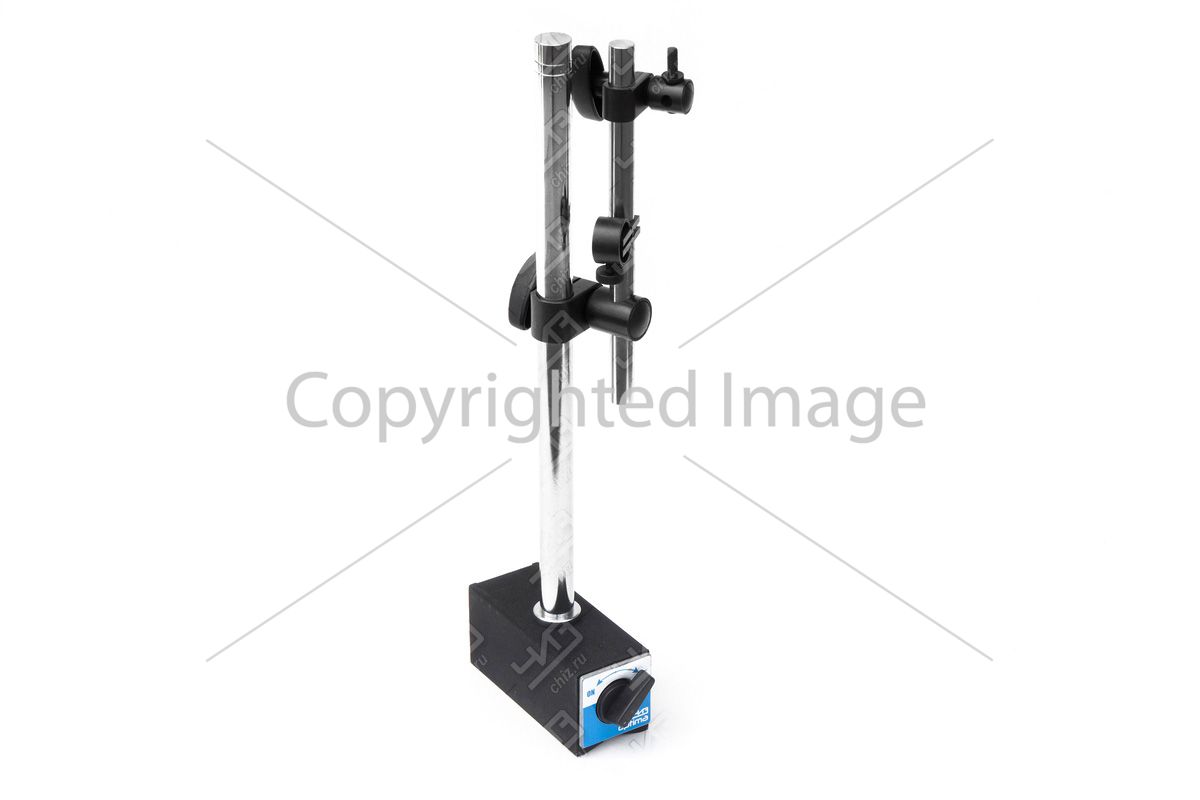 Ölçü bölməsi 0,01 mm və daha dəqiq olan ölçü başlıqlarının bərkidilməsi üçün nəzərdə tutulmuşdur. Ölçü başlığı üçün dəlik diametri 8H8-dir. Alətin əsasına daimi maqnit quraşdırılmışdır. Silindrik sütun boyunca ucu ölçü başlığı ilə təchiz edilmiş çubuğu olan mufta hərəkət edir. Maqnitin yandırılması/söndürülməsi tutacağın döndərilməsi ilə həyata keçirilir. Ştativ ölçünü dəqiq tənzimləmək üçün qurğuya malikdir.