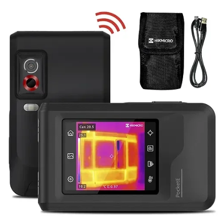 Hikmicro PocketE Əl Termal Kamerası 96 x 96 piksel IR təsvir ölçüsünə, 50 µm termal həssaslığa, 25 Hz kadr tezliyinə və 50 x 50° baxış sahəsinə malik güclü cib ölçülü termal görüntüləmə kamerasıdır. O, böyük əraziləri skan etmək üçün idealdır və buna görə də bina, HVAC, elektrik və mexaniki yoxlamalar üçün idealdır. Tam ekranlı radiometrik termal təsvirləri çəkə bilən Hikmicro PocketE portativ termal görüntüləmə kamerası -20°C ilə +350°C arasında temperaturu ±2°C/2% dəqiqliklə ölçə bilir. O, anomaliyaları müəyyən etməyə kömək etmək üçün maksimum, minimum və daxili temperaturları avtomatik izləyir. Hikmicro PocketE portativ termal görüntüləmə kamerası bir toxunuş səviyyəsi və məsafə kimi faydalı funksiyaları da ehtiva edir; IR rezolyusiyasını 240 x 240 pikselə qədər artıran SuperIR funksiyası; 0,3 milyon piksel təsvir ölçülü video kamera; beş şəkil rejimi; 4 GB eMMC flash sürücüsü; və Wi-Fi bağlantısı. Hikmicro PocketE Əl Termal Kamerası təftiş və problemlərin aradan qaldırılması üçün ideal olan yığcam, çox yönlü və sərfəli infraqırmızı kameradır.