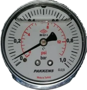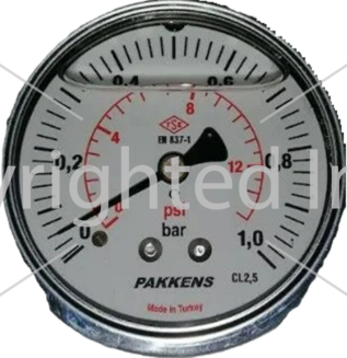 Манометр с глицерином (0-1 бар 63 мм 1/4" крепление сзади) Pakkens 0631001202