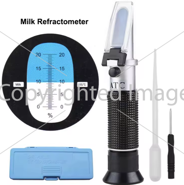 Рефрактометр измеряет удельный вес (плотность) и содержание сухих веществ или белка в молозиве крупного рогатого скота (в частности, коровьем молозиве).