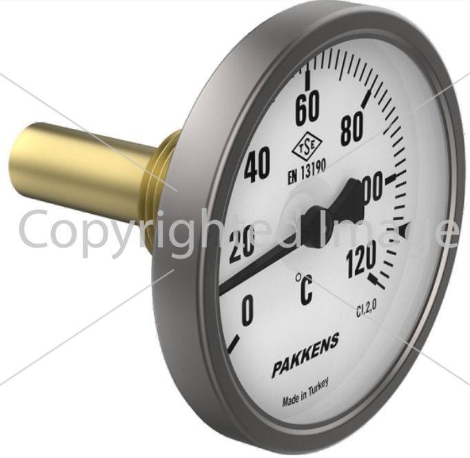 Термометр манометрический Ø63 мм 120°C 5см 1/2'' CL 2,0 Bimetal Pakkens 0634020105