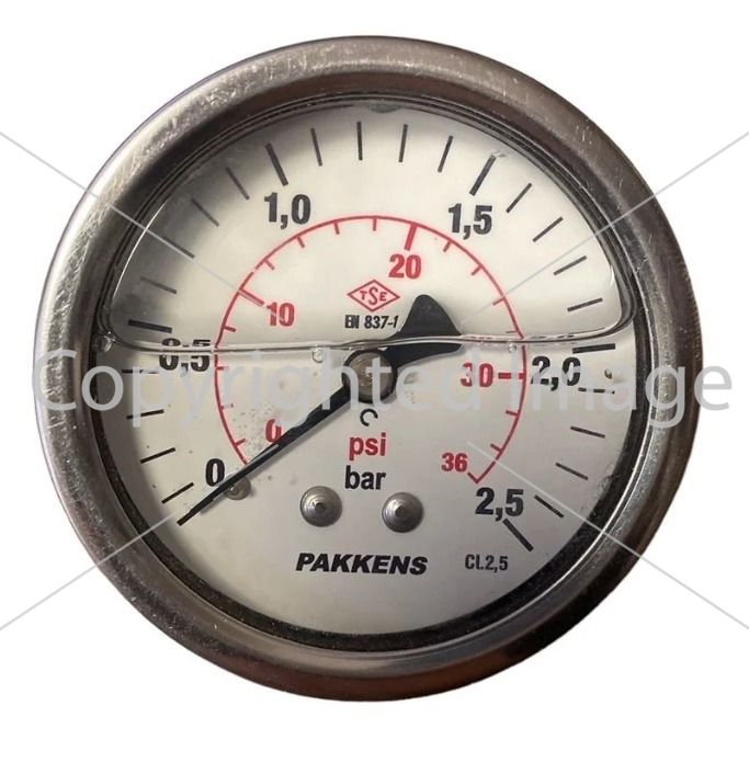 Manometr qliserinli (0-2,5 bar 63 mm 1/4" arxa bağlantı) Pakkens 0631001204