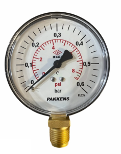 Manometr quru tipli (0-0,6 bar 50 mm, G1/4"B alt bağlantı) Pakkens 0501000101