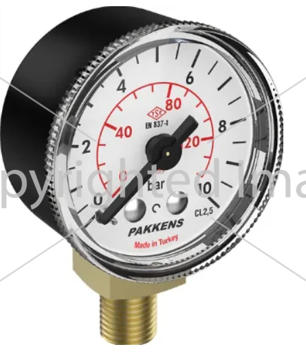 Manometr quru tipli (0-10 bar 50 mm, G1/4"B alt bağlantı) Pakkens 0501000107