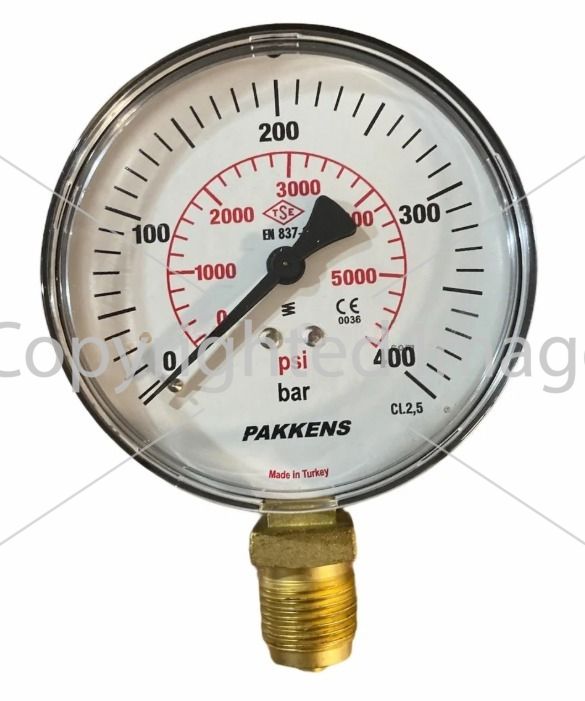 Manometr quru tipli (0-400 bar 50 mm, G1/4"B alt bağlantı metal gövdə) Pakkens 0501000117MG