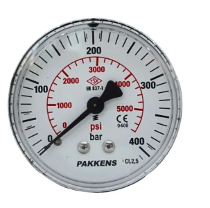 Manometr quru tipli (0-400 bar 63 mm 1/4" arxa bağlantı) Pakkens 0631000217