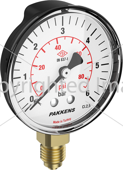 Manometr quru tipli (0-6 bar 50 mm, G1/4"B alt bağlantı) Pakkens 0501000106