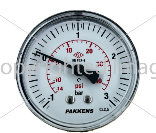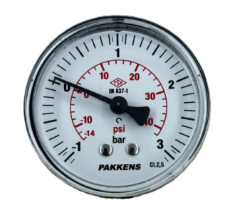 Manovakuummetr quru tipli (-1/+3 bar 40 mm, G1/8"B arxa bağlantı) Pakkens 0402000205MG