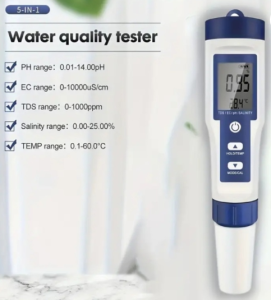 5-in-1 rəqəmsal su keyfiyyəti test cihazı həm məişət, həm də peşəkar şəraitdə əsas su parametrlərinin sürətli və dəqiq monitorinqi üçün nəzərdə tutulmuşdur.