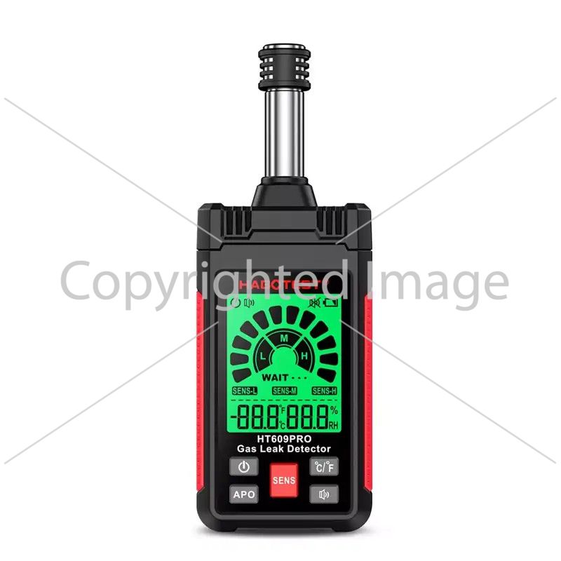 Habotest HT609PRO detektoru qaz sızmalarını tez və dəqiq şəkildə aşkar etməyə imkan verir. Cihaz metan, propan, bütan, karbonmonoksid, ammonyak, asetilen, aseton, benzol, hidrogen, etanol, kerosin, həlledicilər və digər qaz növlərini tanıyır və bu, evdə, işdə, emalatxanada və ya laboratoriyada təhlükəsizliyə effektiv nəzarət etməyə imkan verir. Cihaz qaz konsentrasiyasını PPM vahidlərində dəqiq ölçmə imkanı da təqdim edir. Rəngli LCD ekran, intuitiv qrafik göstərici, 1.5 metrlik teleskopik zond və ikiqat siqnal sistemi (səs və işıq) cihazdan istifadəni olduqca rahat edir.
