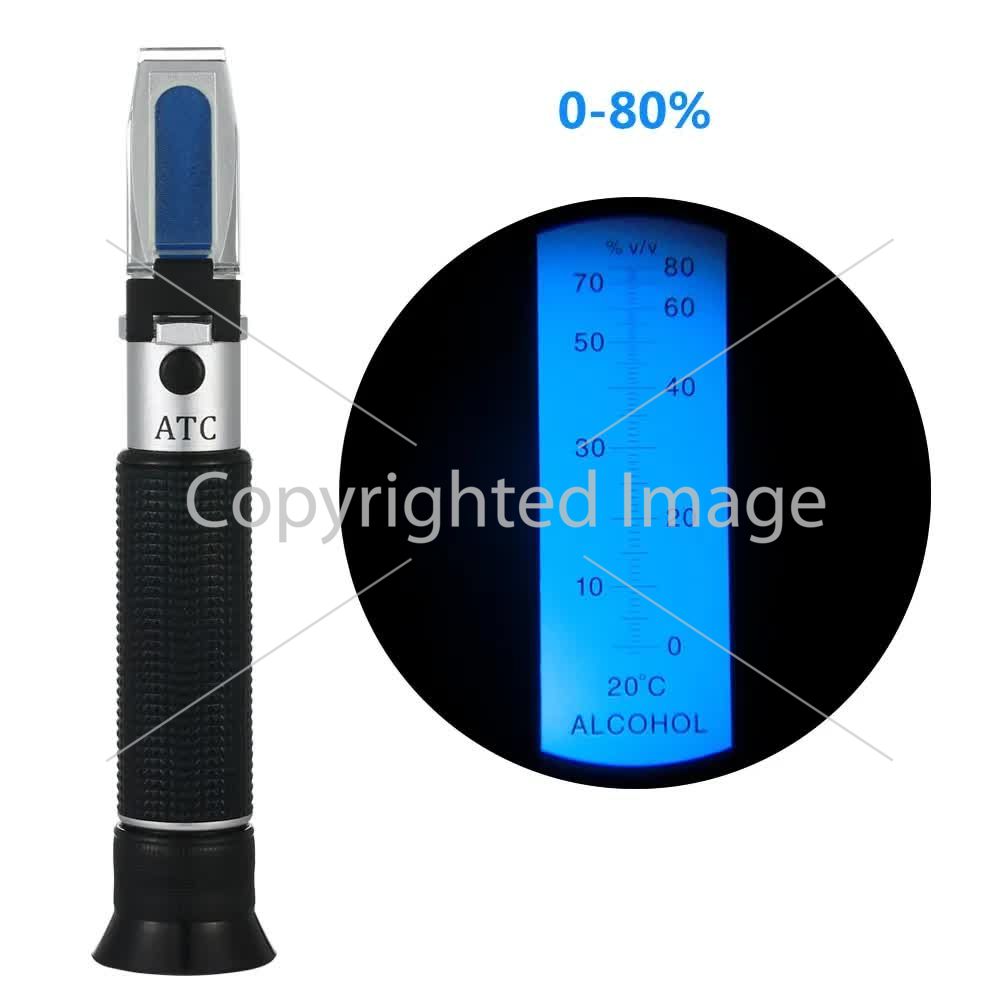 Общий принцип работы любого рефрактометра: капнуть каплю измеряемой жидкости на стекло внутри устройства, закрыть крышкой далее направить рефрактометр на источник света и смотреть в окуляр: измерения снимаются с помощью линии раздела синего поля и светлого поля. Прибор имеет одну шкалу - Alcohol (для измерения спирта в диапазоне от 0 до 80%). Устройство подойдет всем профессионалам и любителям, занятым изготовлением спиртных напитков.